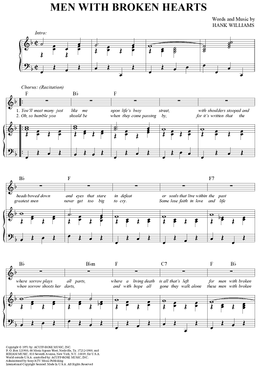 "Men with Broken Hearts" Sheet Music by Hank Williams
