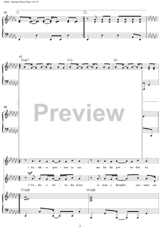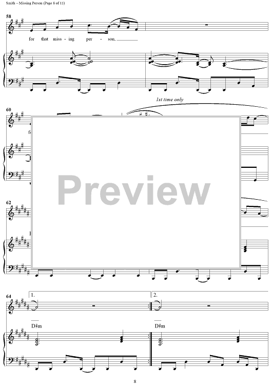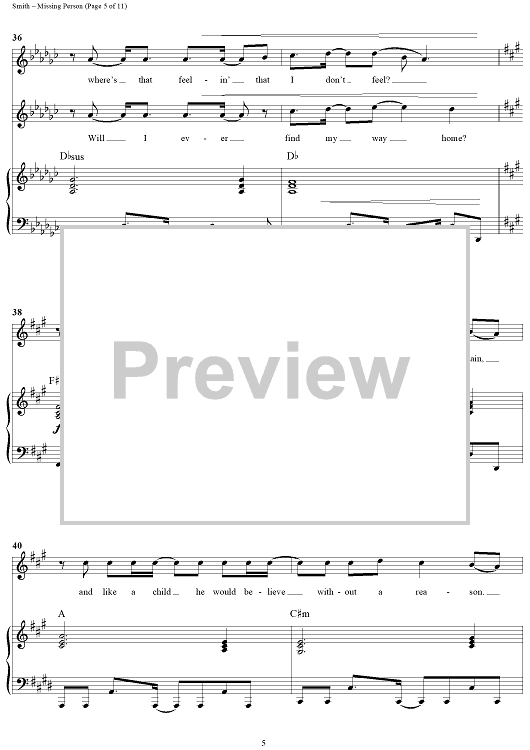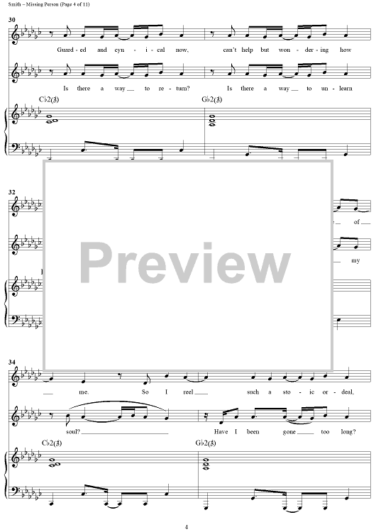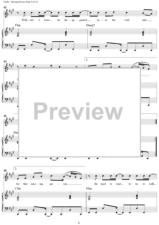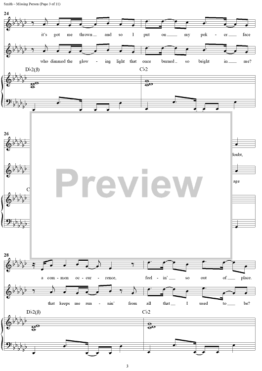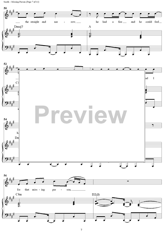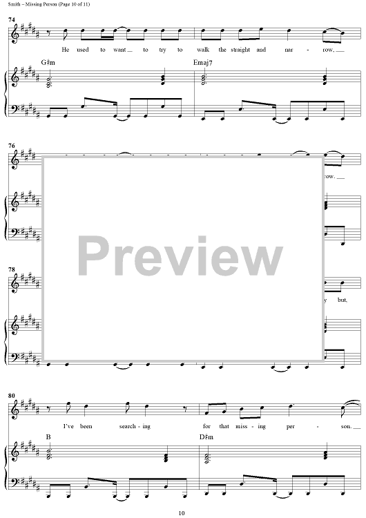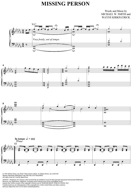 Digital Sheet Music for Missing Person by Michael W. Smith, Wayne Kirkpatrick scored for Piano/Vocal/Chords; id:240927