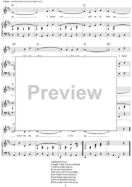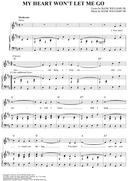 Digital Sheet Music for My Heart Won't Let Me Go by Hank Williams, Hank Williams, Jr. scored for Piano/Vocal/Chords; id:263792
