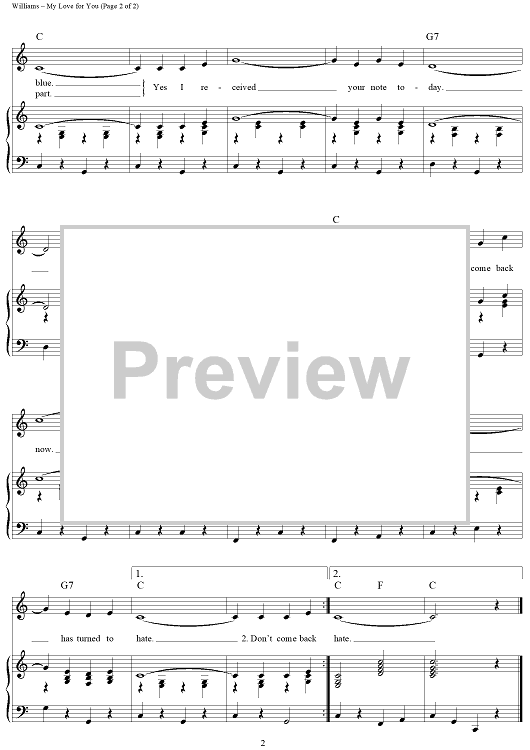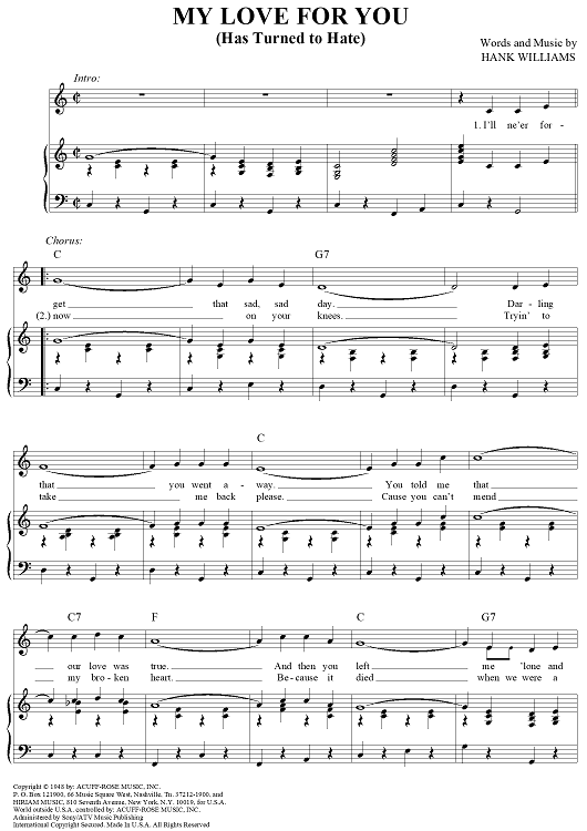 Digital Sheet Music for My Love for You (Has Turned to Hate) by Hank Williams scored for Piano/Vocal/Chords; id:263751