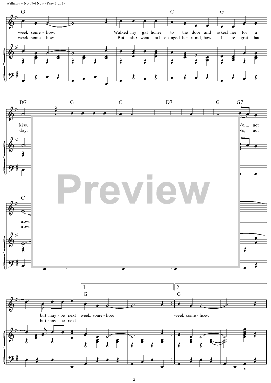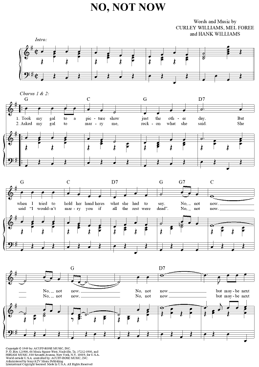 Digital Sheet Music for No, Not Now by Hank Williams, Mel Foree, Curley Williams scored for Piano/Vocal/Chords; id:263815