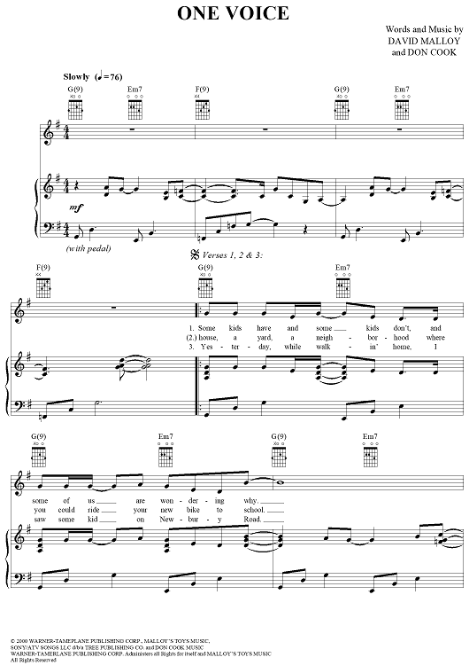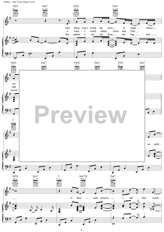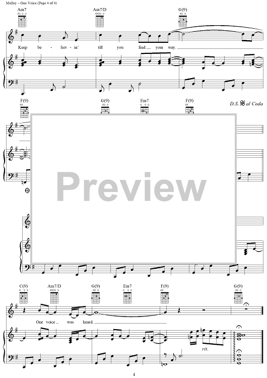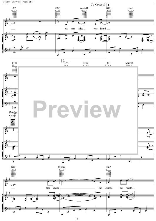 Digital Sheet Music for One Voice by David Malloy, Don Cook, Billy Gilman scored for Piano/Vocal/Chords; id:285680