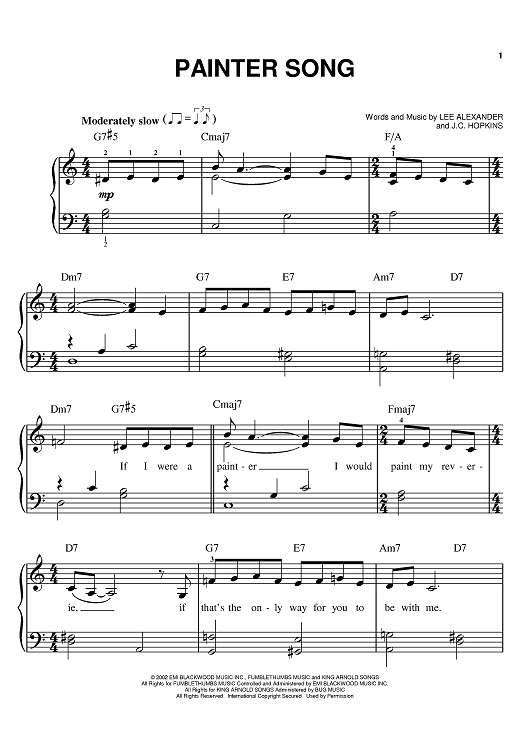 Digital Sheet Music for Painter Song by Norah Jones, Lee Alexander, J.C. Hopkins scored for Easy Piano; id:371216
