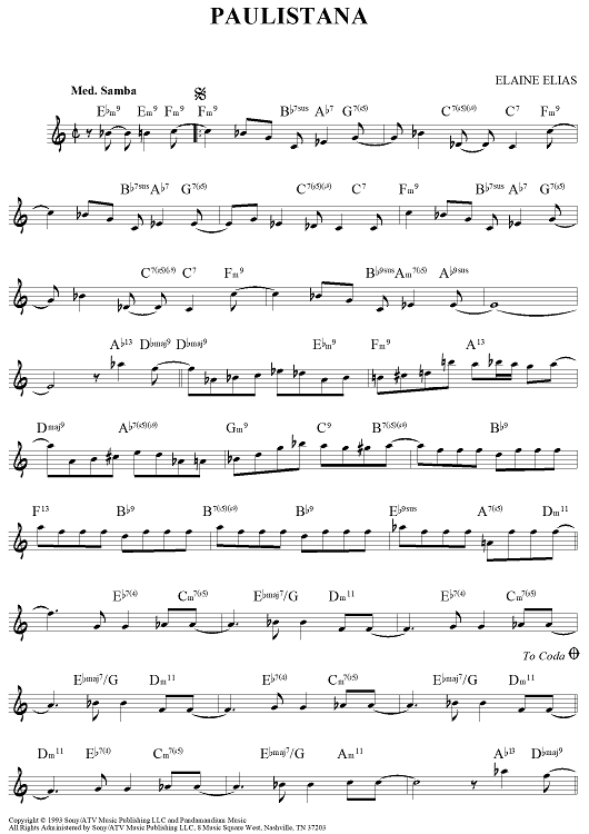 Digital Sheet Music for Paulistana by Elaine Elias scored for Lead Sheet; id:456686