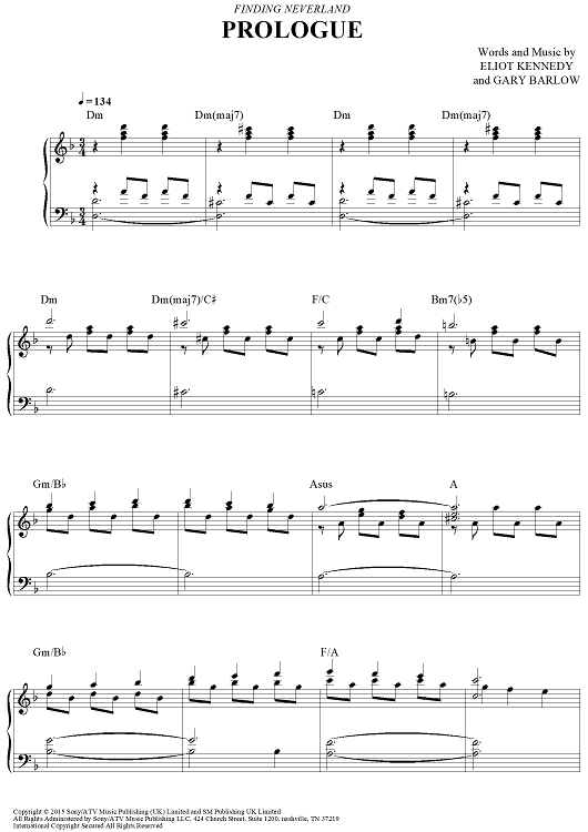 "Prologue - from Finding Neverland" Sheet Music by Gary Barlow