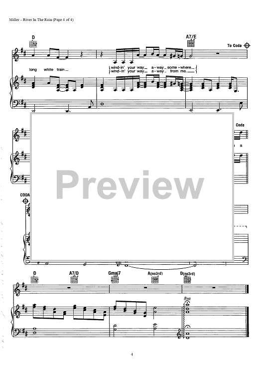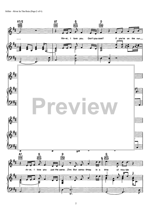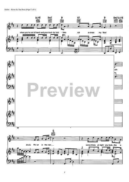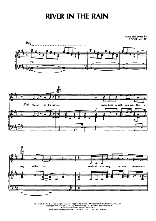 Digital Sheet Music for River In The Rain by Roger Miller scored for Piano/Vocal/Chords; id:441875