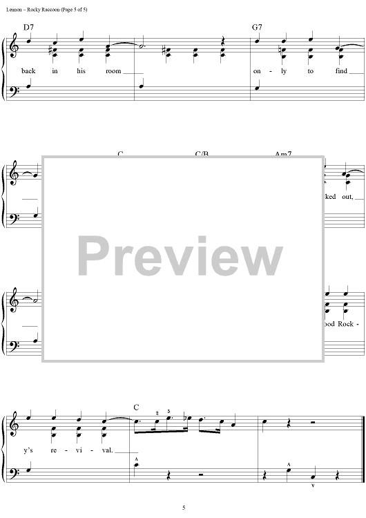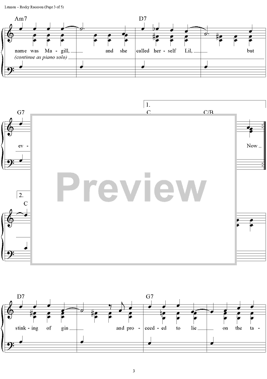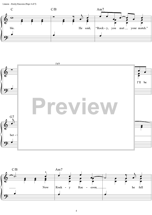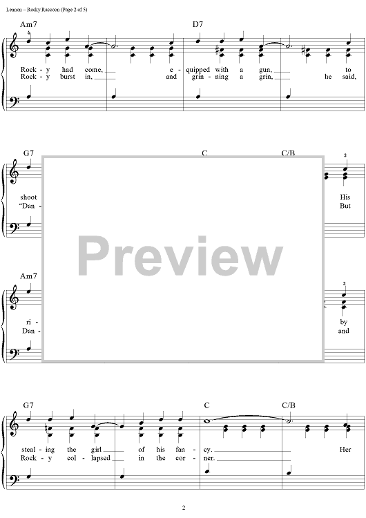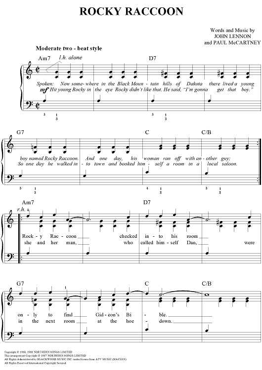 Digital Sheet Music for Rocky Raccoon by Paul McCartney, The Beatles, John Lennon scored for Easy Piano/Vocal/Chords; id:450201