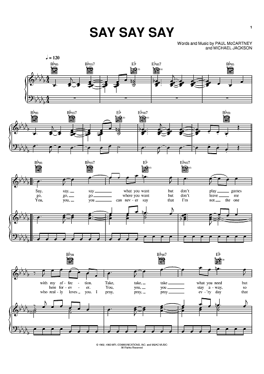 Digital Sheet Music for Say Say Say by Paul McCartney, Michael Jackson scored for Piano/Vocal/Chords; id:394193