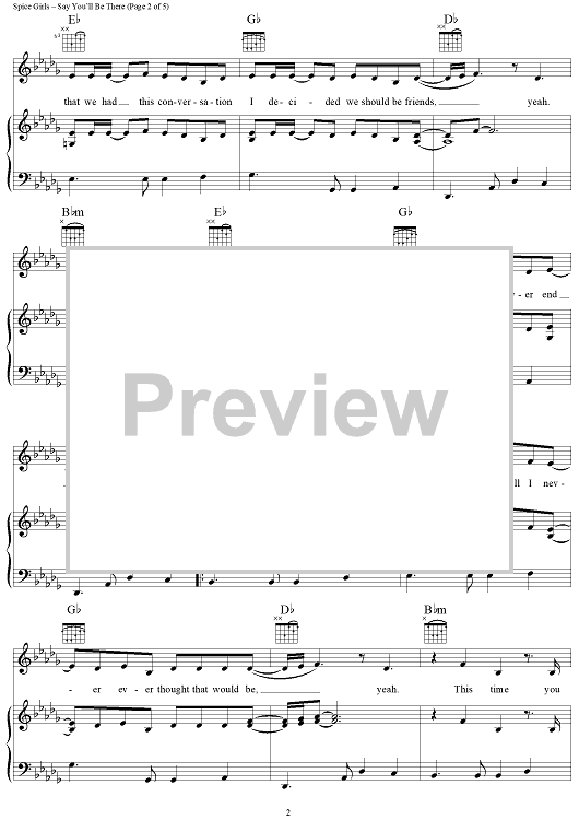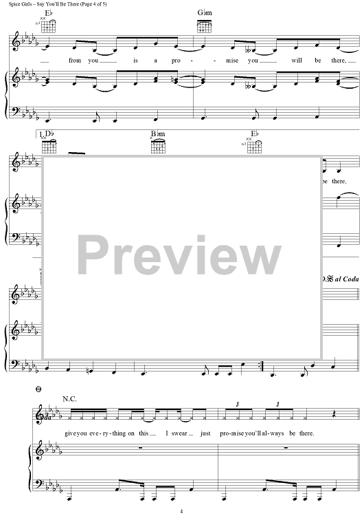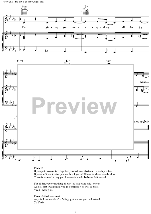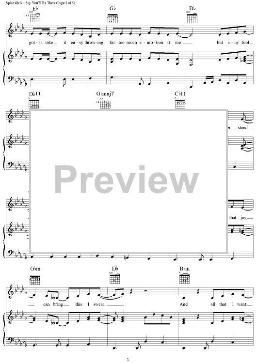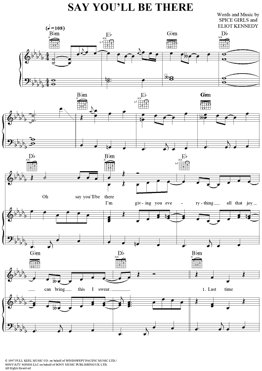 Digital Sheet Music for Say You'll Be There by Eliot Kennedy, Spice Girls scored for Piano/Vocal/Chords; id:110872