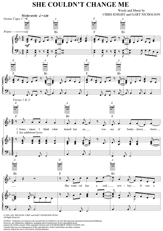 Digital Sheet Music for She Couldn't Change Me by Gary Nicholson, Chris Knight, Montgomery Gentry scored for Piano/Vocal/Chords; id:283471