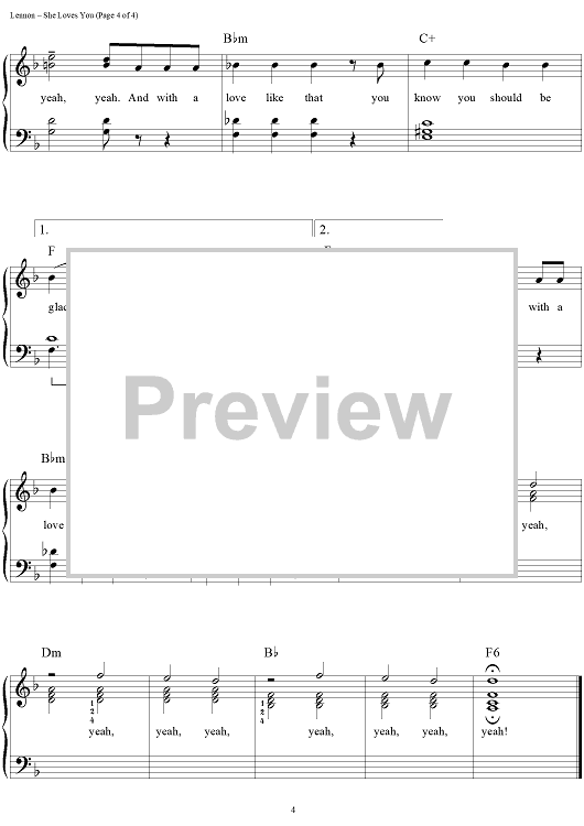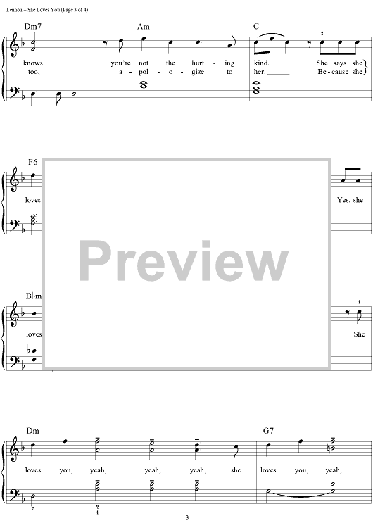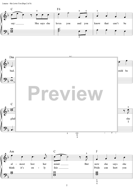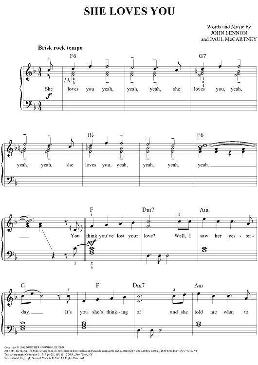 Digital Sheet Music for She Loves You by Paul McCartney, The Beatles, John Lennon scored for Easy Piano/Vocal/Chords; id:450595