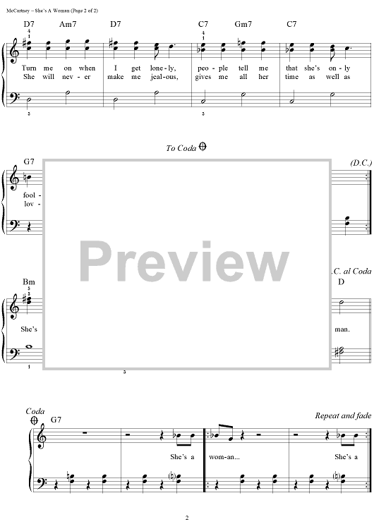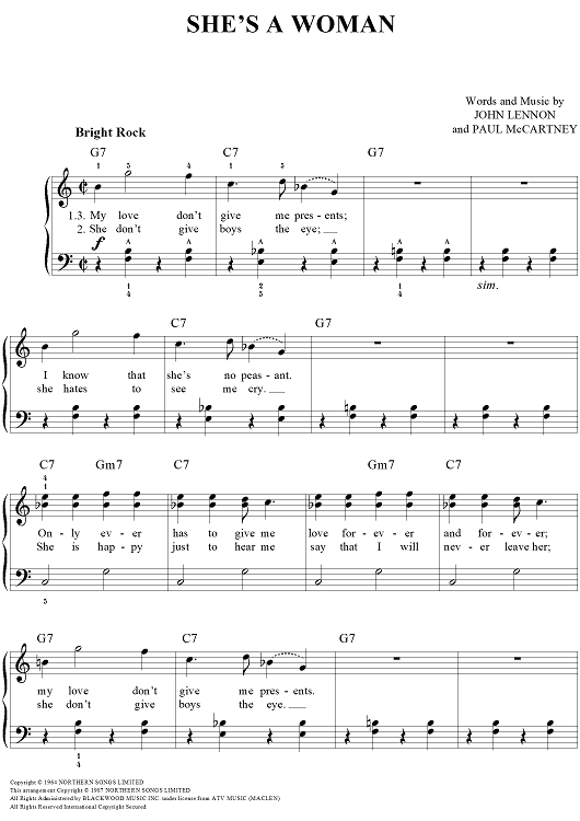 Digital Sheet Music for She's A Woman by Paul McCartney, The Beatles, John Lennon scored for Easy Piano/Vocal/Chords; id:450596