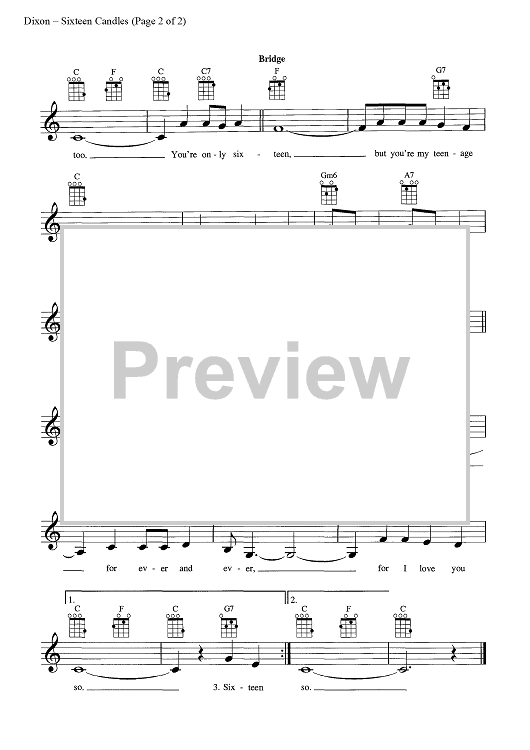 Digital Sheet Music for Sixteen Candles by Luther Dixon, Allyson Khent, The Crests scored for Ukulele/Vocal; id:447381