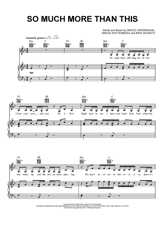 Digital Sheet Music for So Much More Than This by Gregg Wattenberg, Grace VanderWaal, Mike Adubato scored for Piano/Vocal/Chords; id:465693