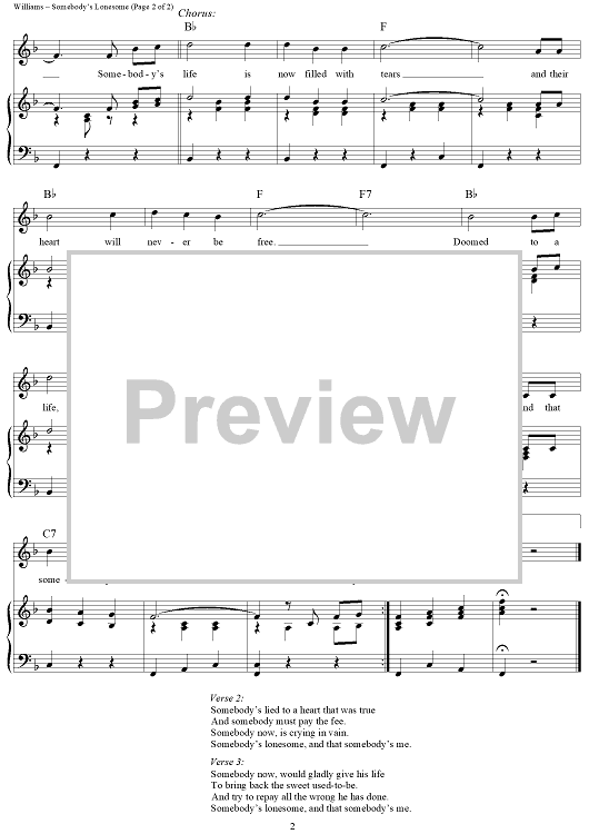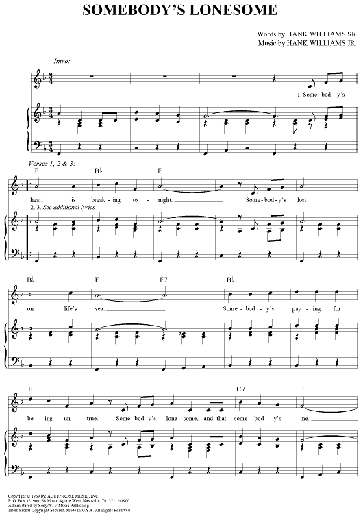 Digital Sheet Music for Somebody's Lonesome by Hank Williams, Hank Williams, Jr. scored for Piano/Vocal/Chords; id:263846