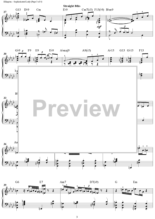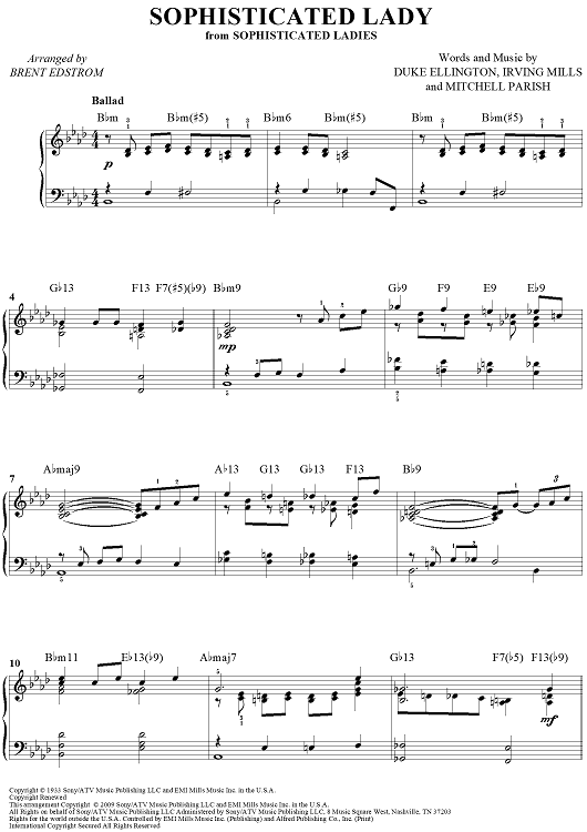 Digital Sheet Music for Sophisticated Lady by Mitchell Parish, Duke Ellington, Irving Mills, Brent Edstrom scored for Piano Solo; id:465792