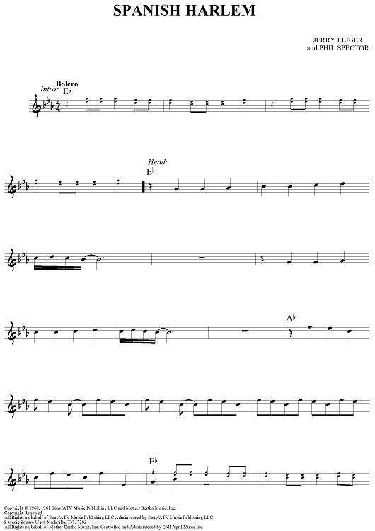 Digital Sheet Music for Spanish Harlem by Phil Spector, Jerry Leiber scored for Lead Sheet; id:456880