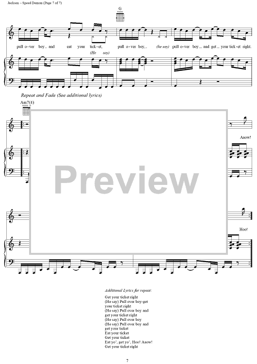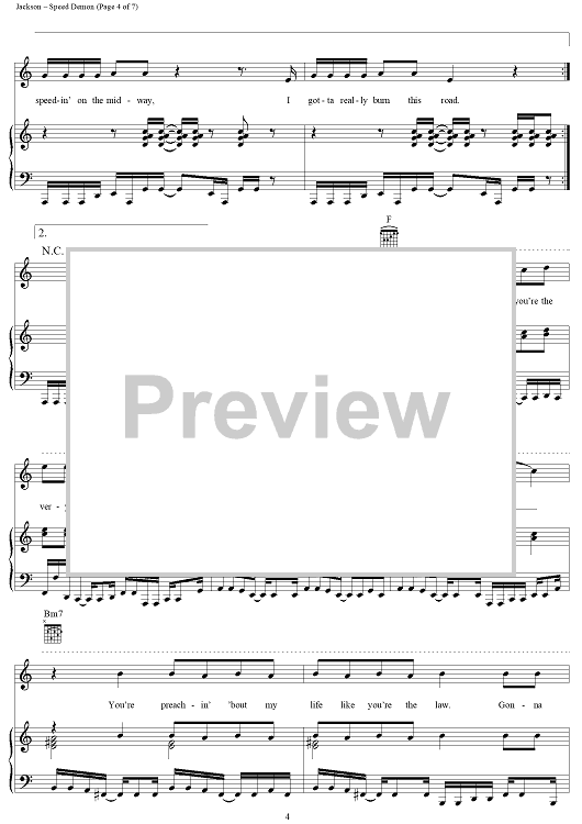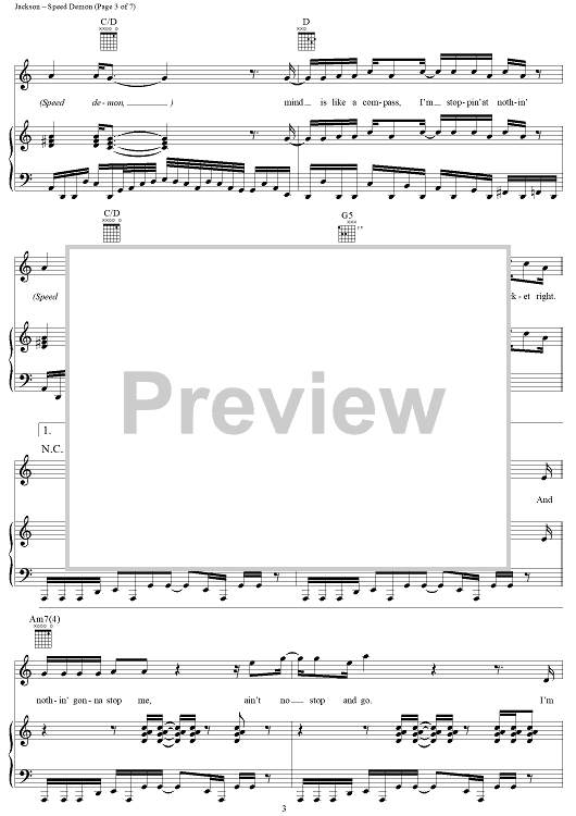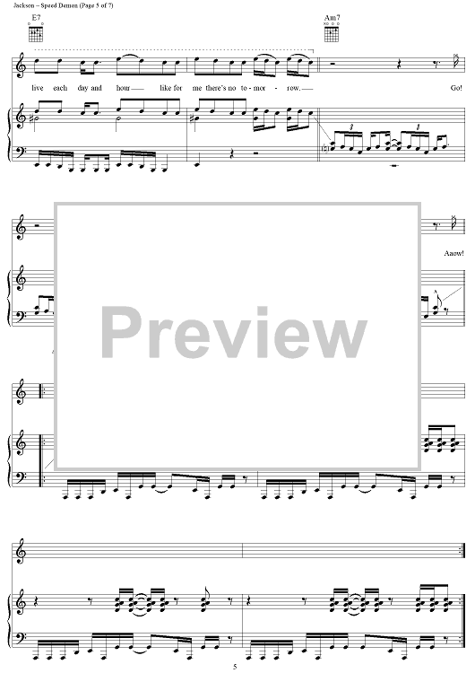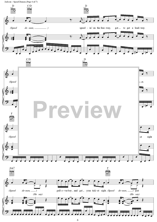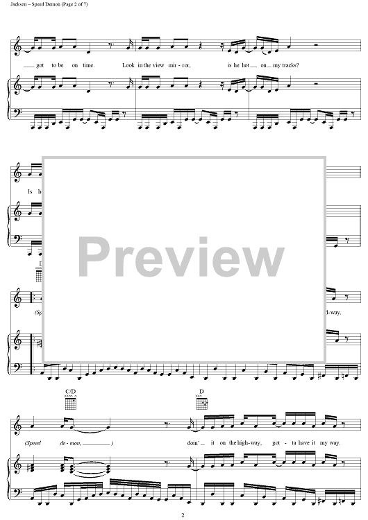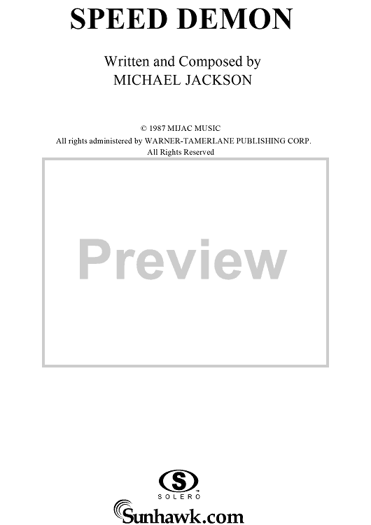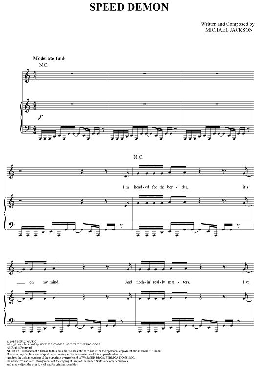 Digital Sheet Music for Speed Demon by Michael Jackson scored for Piano/Vocal/Chords; id:241669