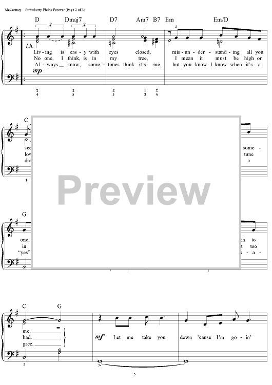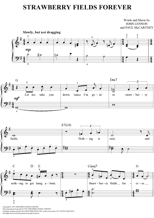 Digital Sheet Music for Strawberry Fields Forever by Paul McCartney, The Beatles, John Lennon scored for Easy Piano/Vocal/Chords; id:450598
