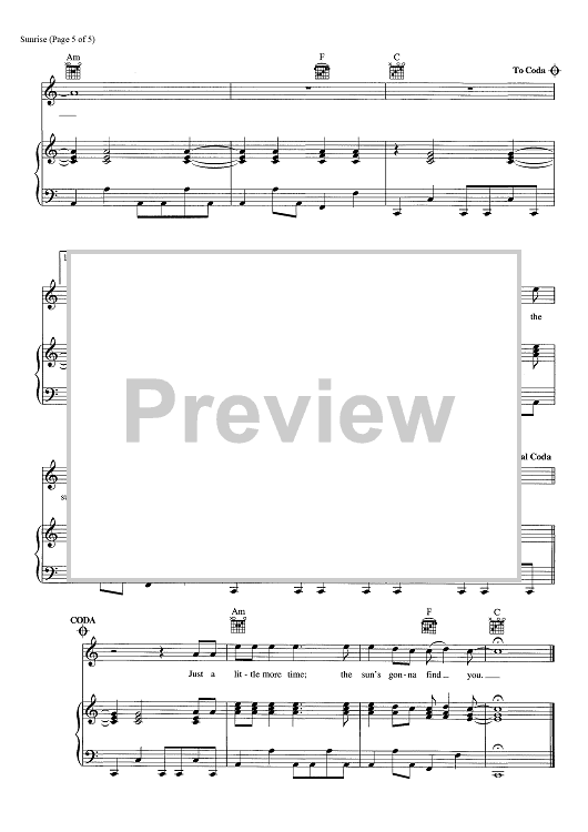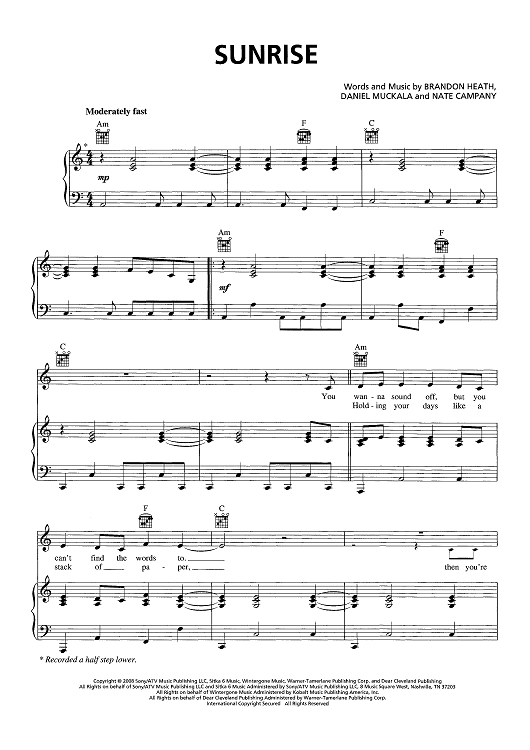 Digital Sheet Music for Sunrise by Daniel Muckala, Brandon Heath, Nate Campany scored for Piano/Vocal/Chords; id:460436