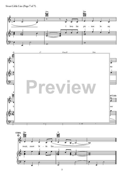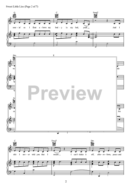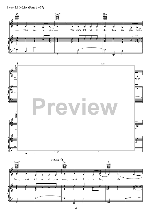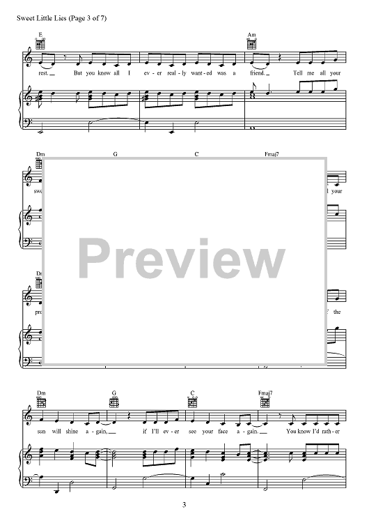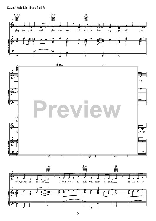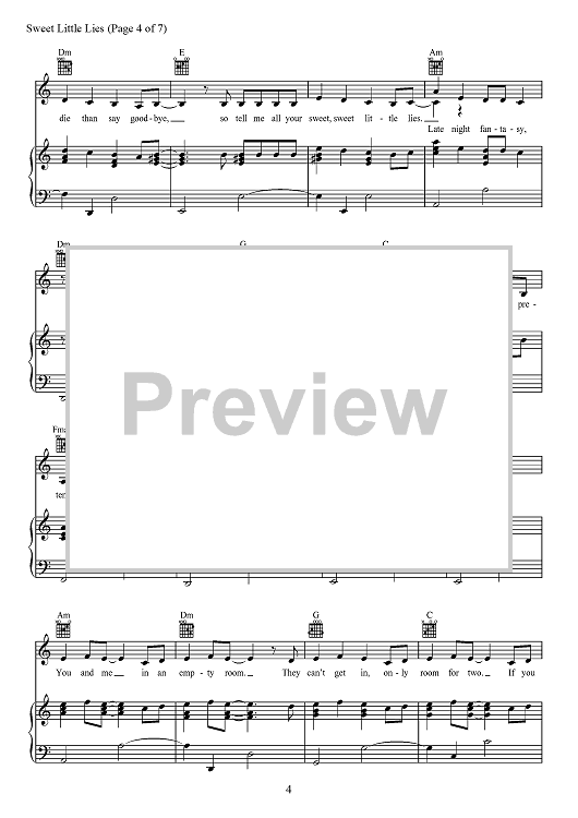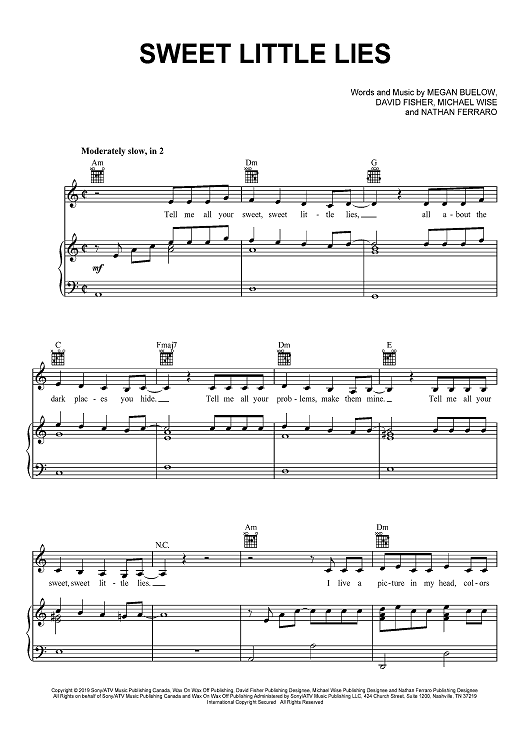 Digital Sheet Music for Sweet Little Lies by David Fisher, Bülow, Michael Wise, Nathan Ferraro scored for Piano/Vocal/Chords; id:468215