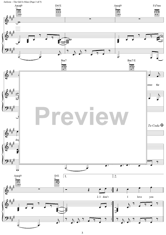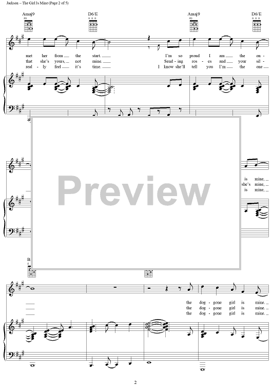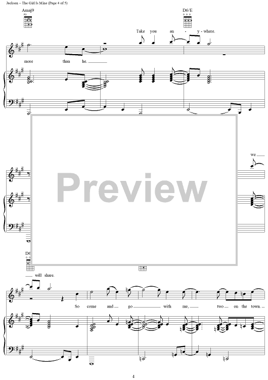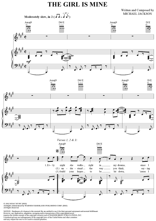 Digital Sheet Music for The Girl is Mine by Michael Jackson scored for Piano/Vocal/Chords; id:286015