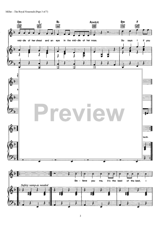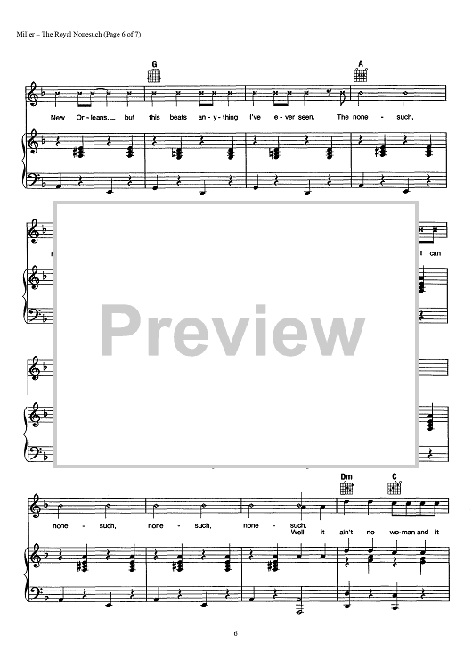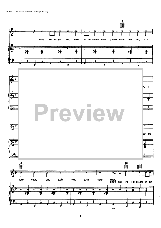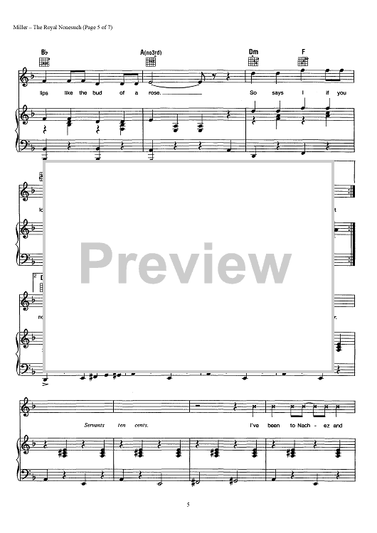 Digital Sheet Music for The Royal Nonesuch by Roger Miller scored for Piano/Vocal/Chords; id:441886