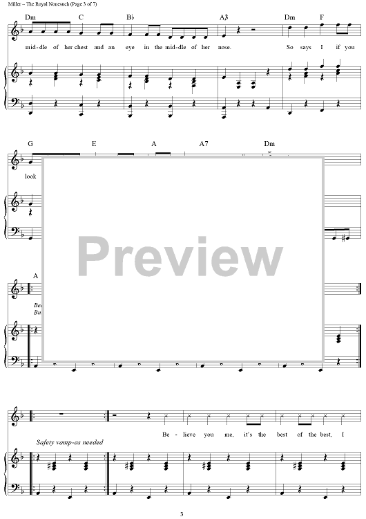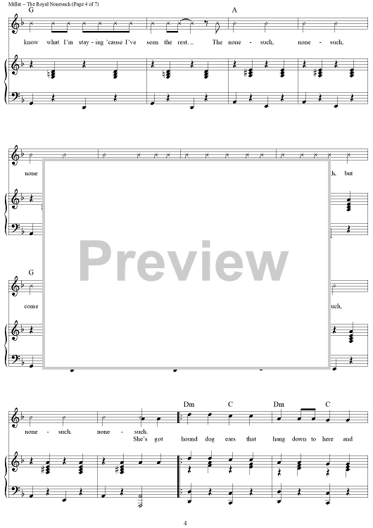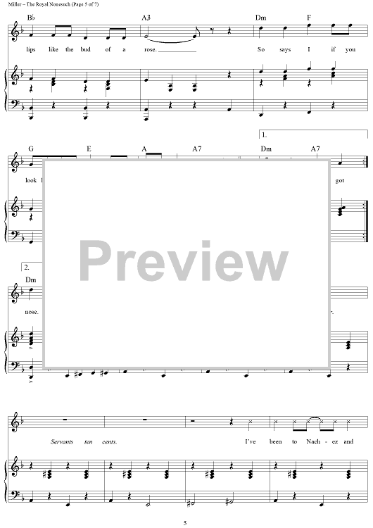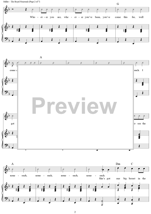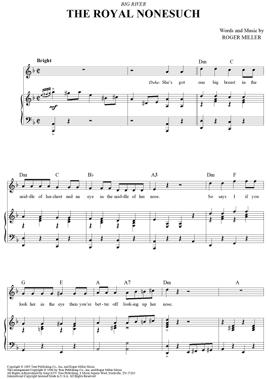 Digital Sheet Music for The Royal Nonesuch by Roger Miller scored for Piano/Vocal/Chords; id:444457