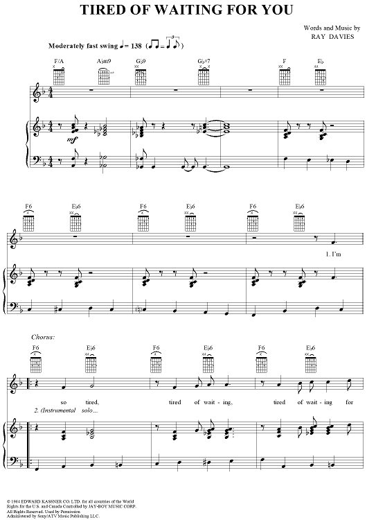 "Tired of Waiting for You" Sheet Music by The Kinks