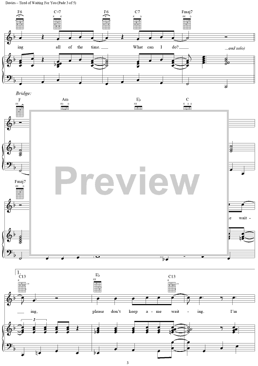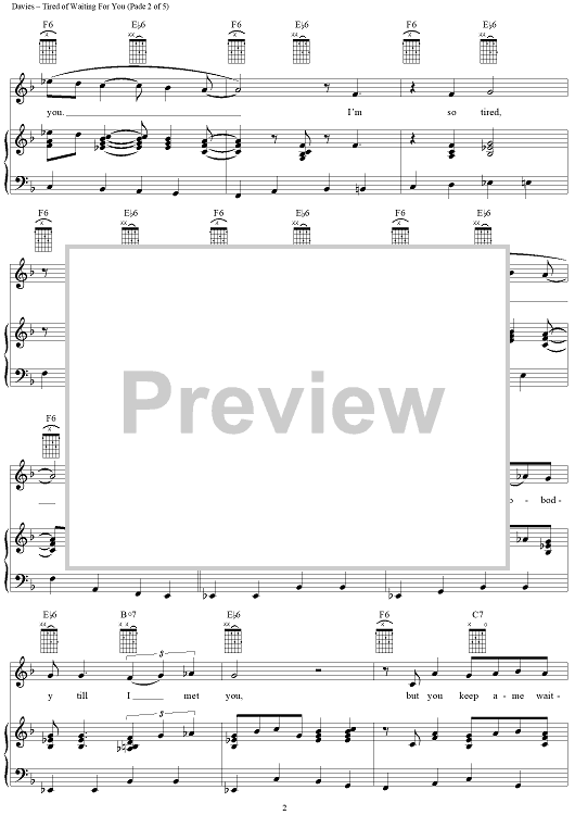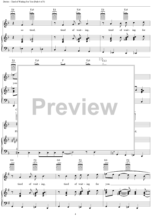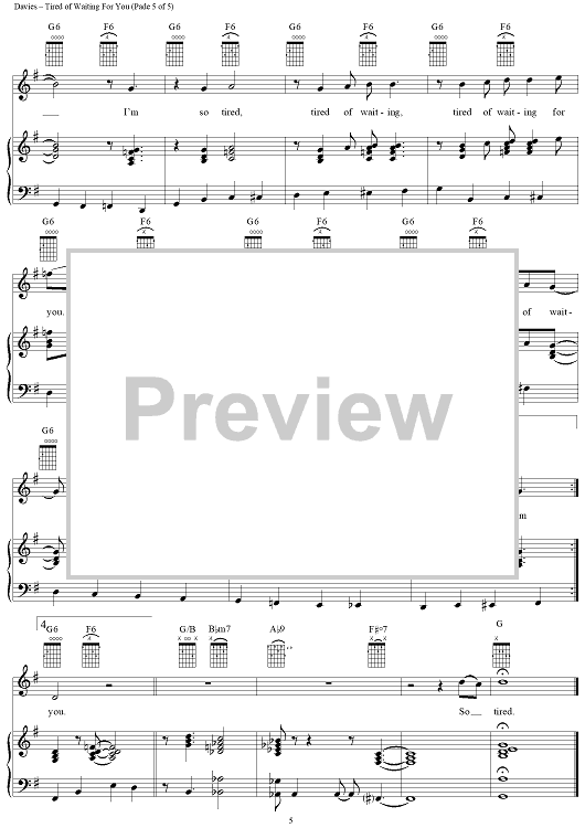Digital Sheet Music for Tired of Waiting for You by Ray Davies, The Kinks scored for Piano/Vocal/Chords; id:273037
