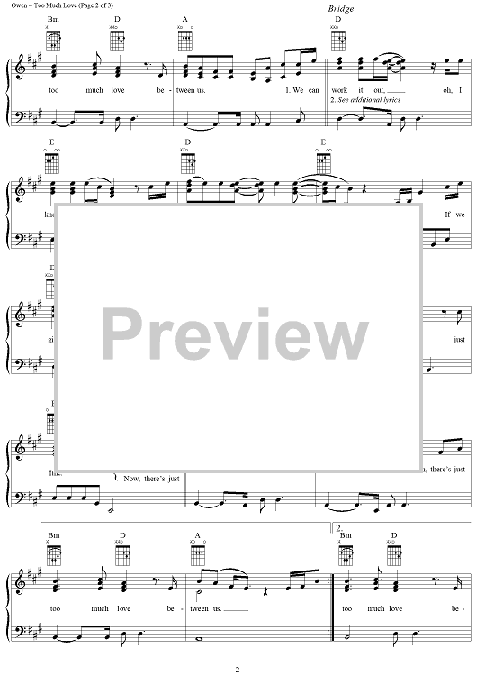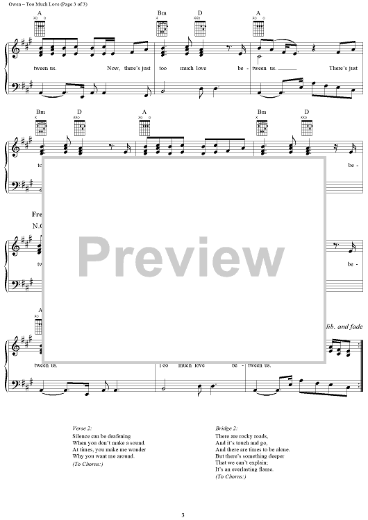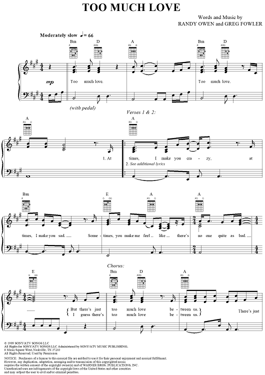 Digital Sheet Music for Too Much Love by Greg Fowler, Randy Owen, Alabama scored for Piano/Vocal/Chords; id:253890