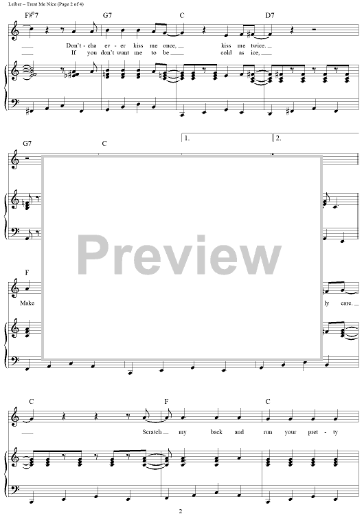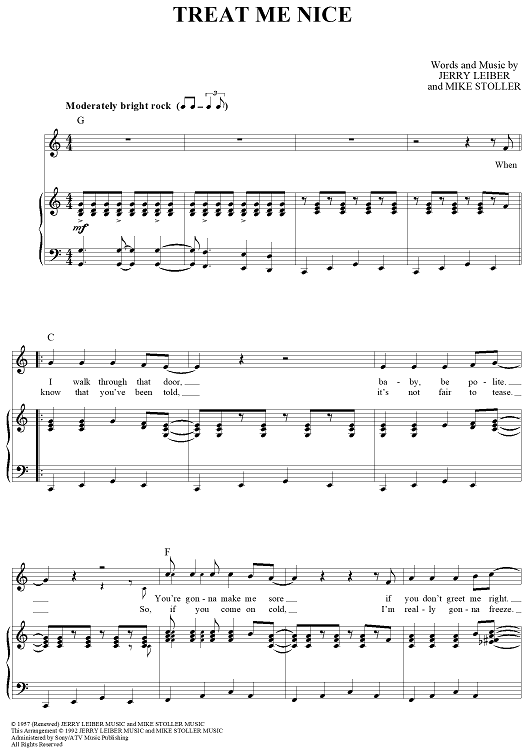Digital Sheet Music for Treat Me Nice by Elvis Presley, Jerry Leiber, Mike Stoller scored for Piano/Vocal/Chords; id:250507
