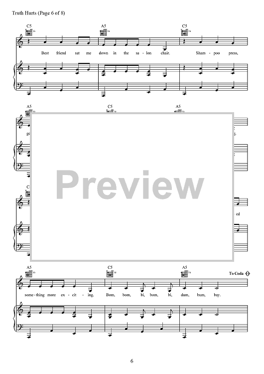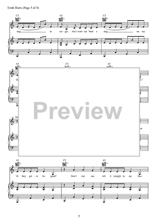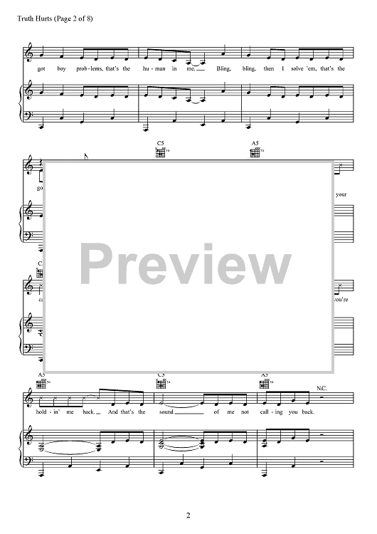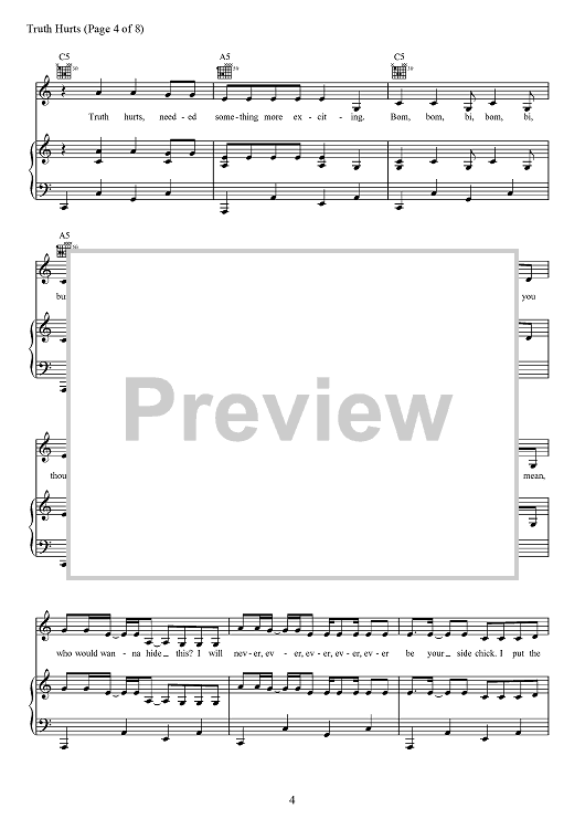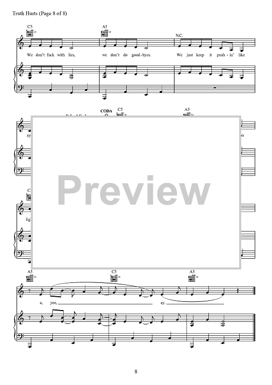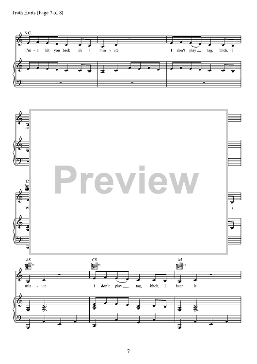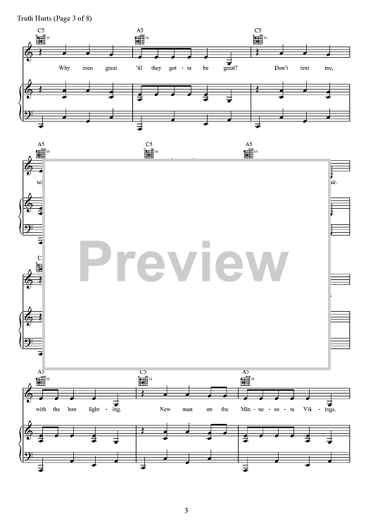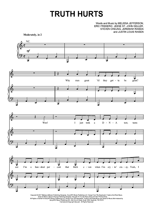 Digital Sheet Music for Truth Hurts by Eric Frederic, Jesse St. John Geller, Lizzo, Melissa Jefferson, Steven Cheung, Jeremiah Raisen, Justin Louis Raisen scored for Piano/Vocal/Chords; id:467697