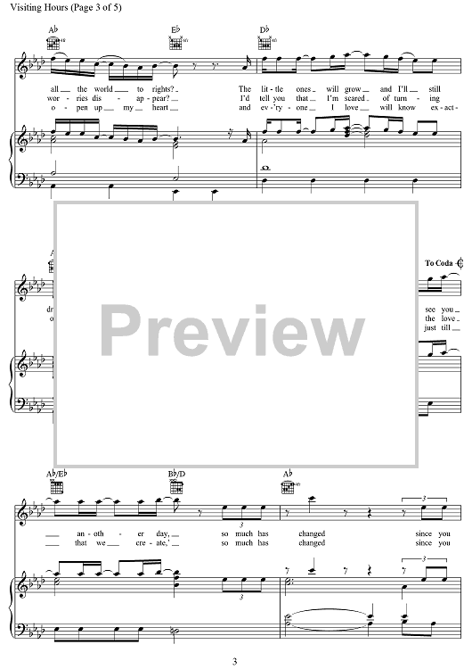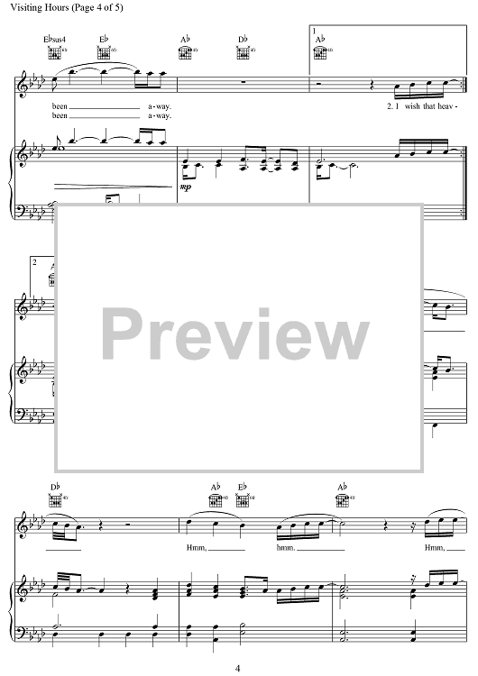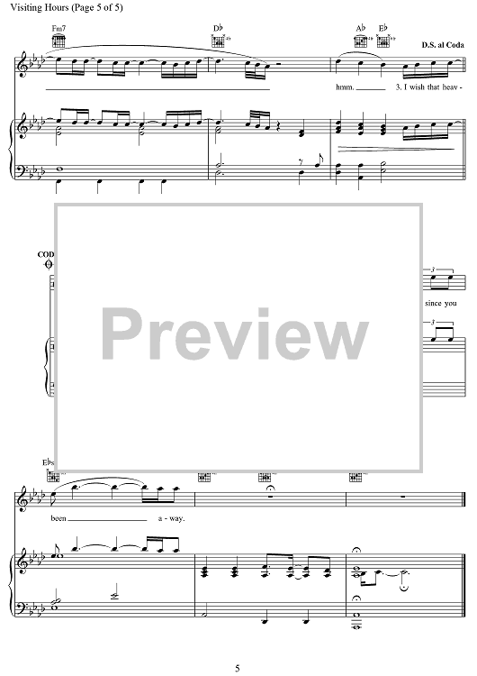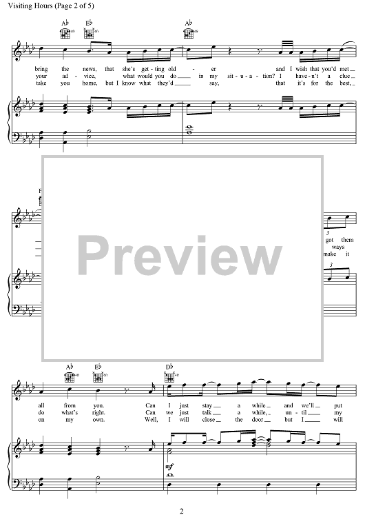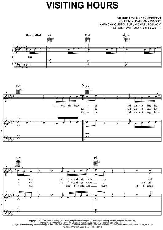 Digital Sheet Music for Visiting Hours by Ed Sheeran, John McDaid, Amy Wadge, Michael Pollack, Anthony Clemons Jr., Kim Lang Smith scored for Piano/Vocal/Chords; id:469607