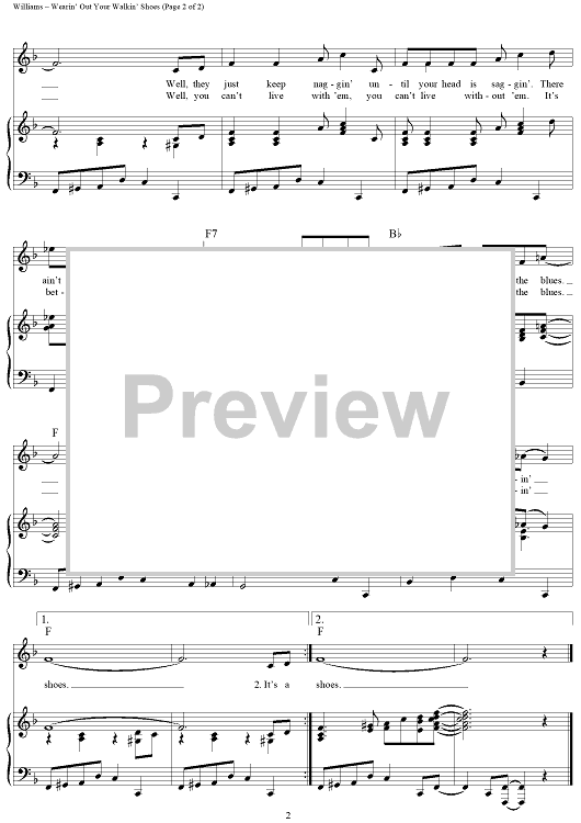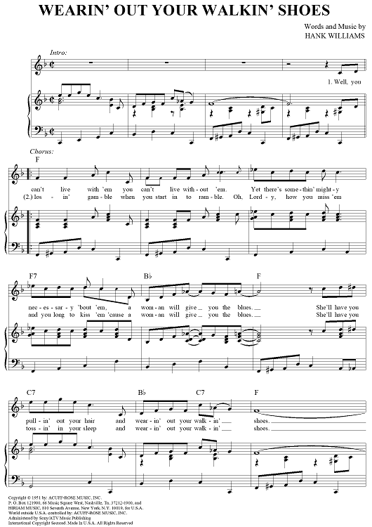Digital Sheet Music for Wearin' Out Your Walkin' Shoes by Hank Williams scored for Piano/Vocal/Chords; id:263835