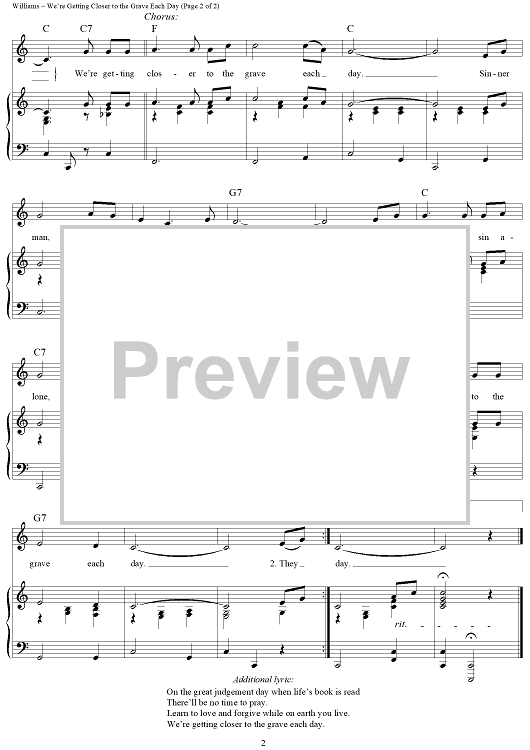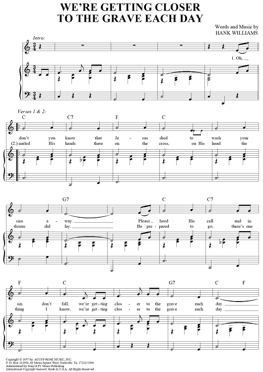 "We're Getting Closer to the Grave Each Day" Sheet Music by Hank Williams