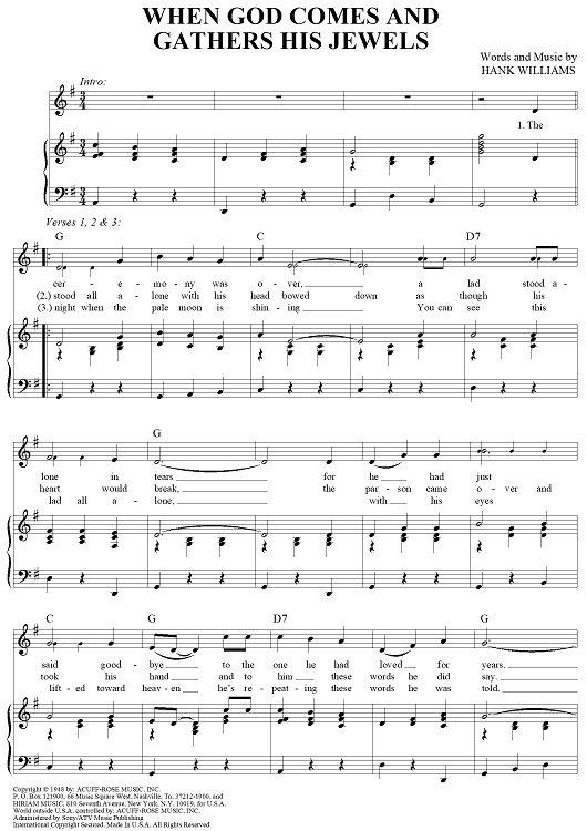 "When God Comes and Gathers His Jewels" Sheet Music by Hank Williams