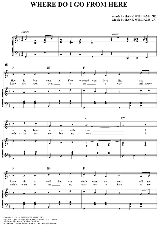 "Where Do I Go from Here" Sheet Music by Hank Williams