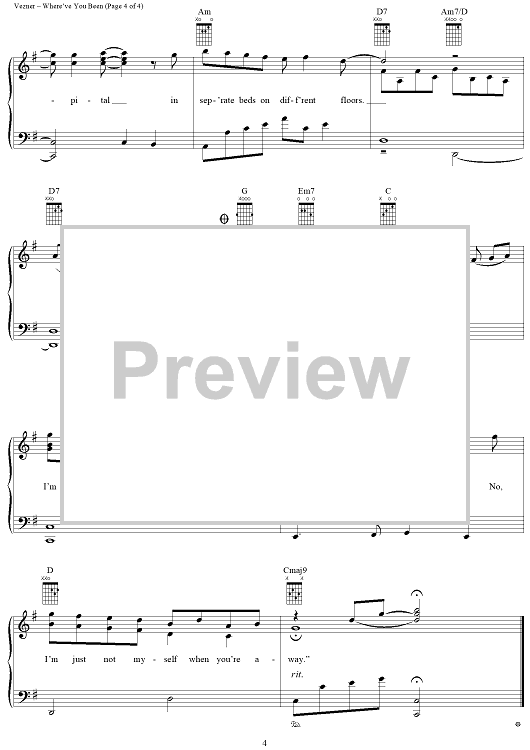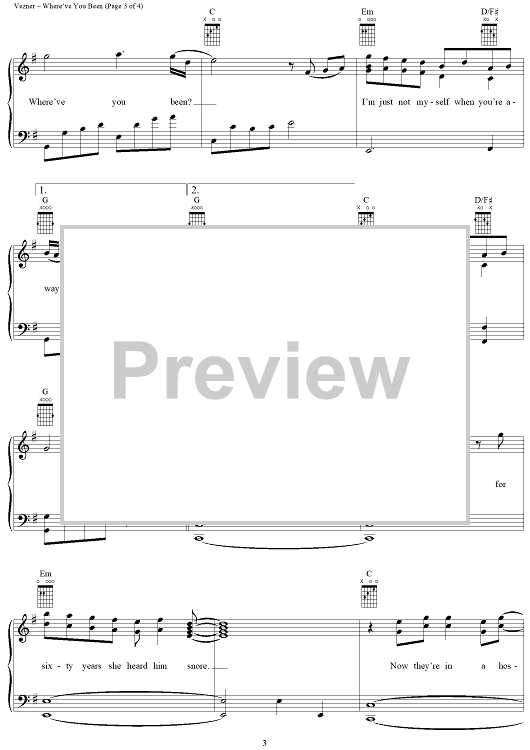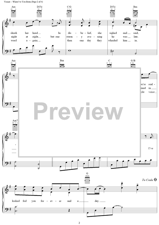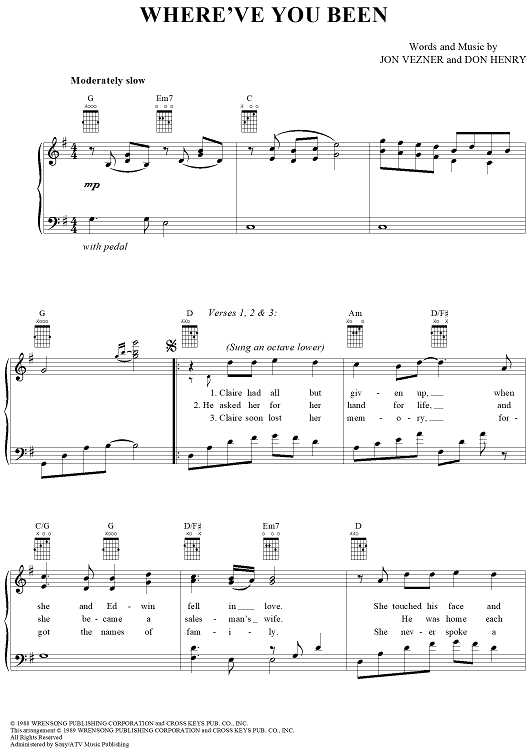 Digital Sheet Music for Where've You Been by Jon Vezner, Kathy Mattea, Don Henry scored for Piano/Vocal/Chords; id:264257