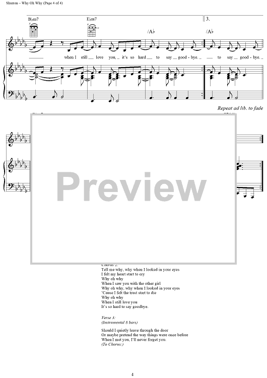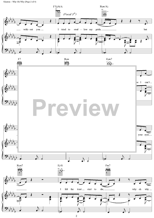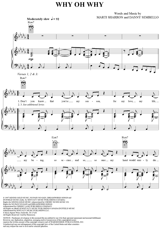 Digital Sheet Music for Why Oh Why by Celine Dion, Marti Sharron, Danny Sembello scored for Piano/Vocal/Chords; id:257614