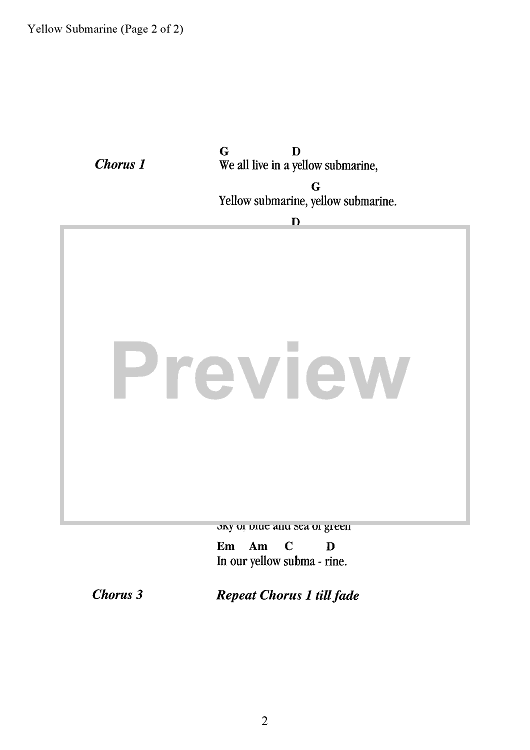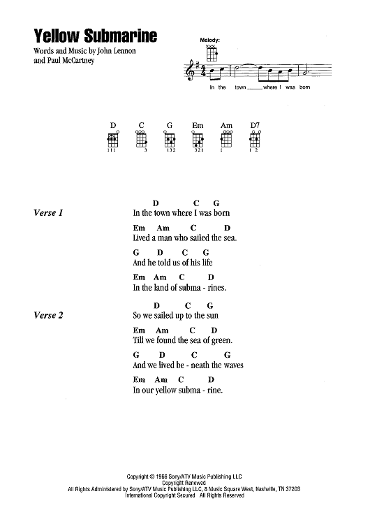 Digital Sheet Music for Yellow Submarine by Paul McCartney, The Beatles, John Lennon scored for Ukulele/Vocal; id:466557