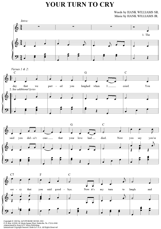 "Your Turn to Cry" Sheet Music by Hank Williams