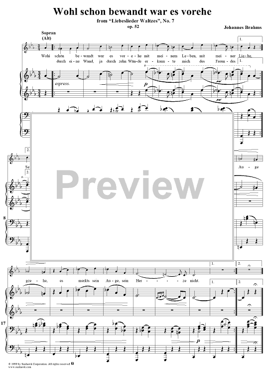 Digital Sheet Music for 7. Wohl schön bewandt war es vorehe by Johannes Brahms scored for Soprano/2 Pianos, 4 Hands; id:274316
