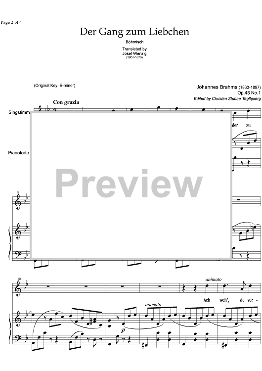 "Der Gang zum Liebchen Op.48 No. 1" Sheet Music by Johannes Brahms