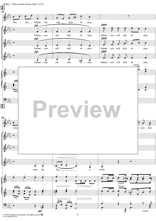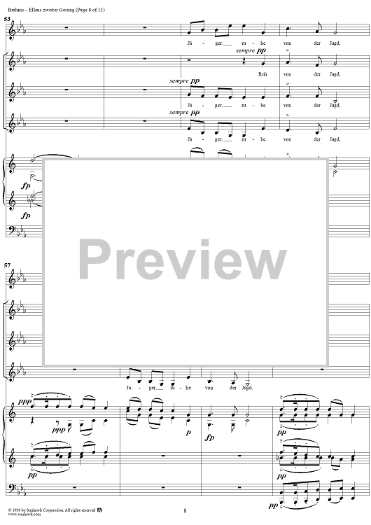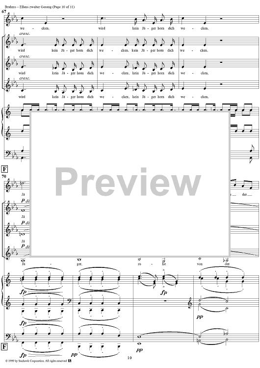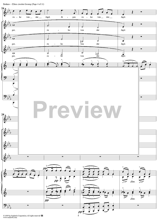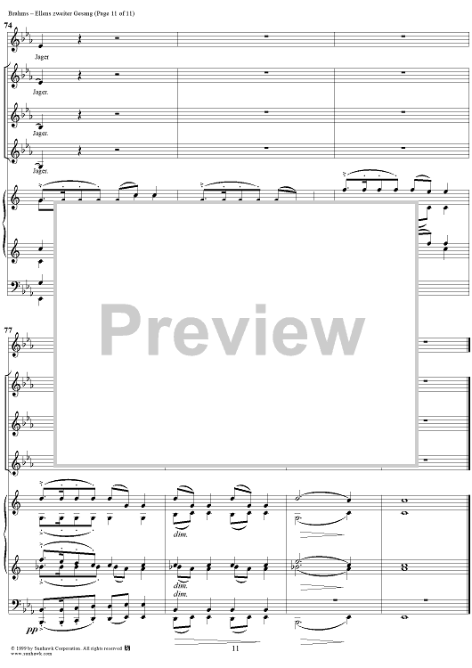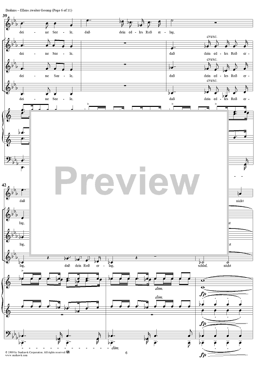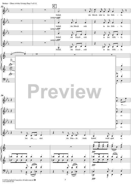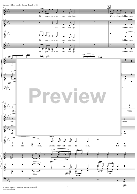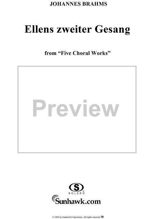 Digital Sheet Music for Ellens zweiter Gesang, Op. 52, No. 2 by Johannes Brahms scored for Soprano/SSA/Four Horns/Two Bassoons; id:274669