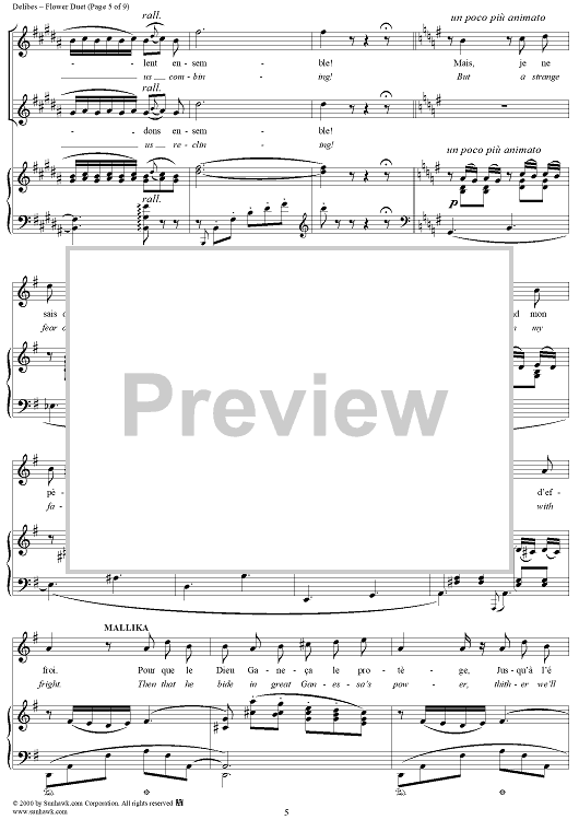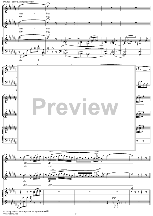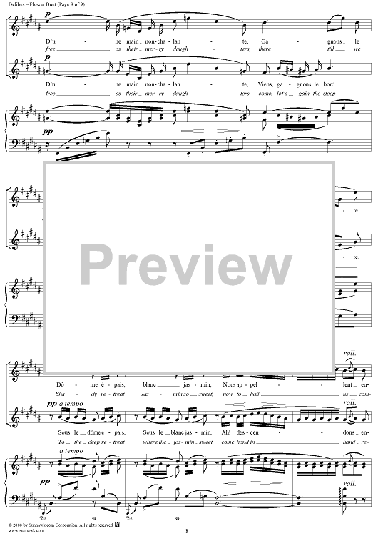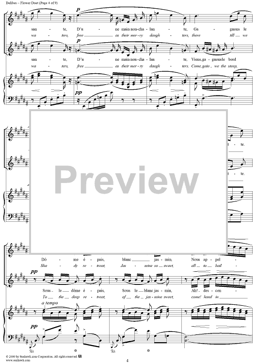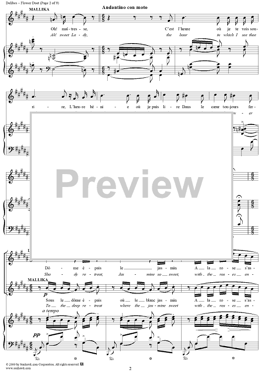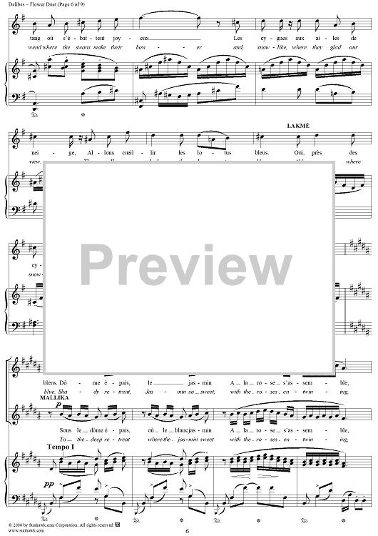 Digital Sheet Music for Flower Duet from Lakmé by Edmond Gondinet, Philippe Gille, Leo Delibes scored for Two Sopranos/Piano; id:151655
