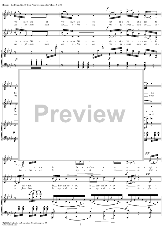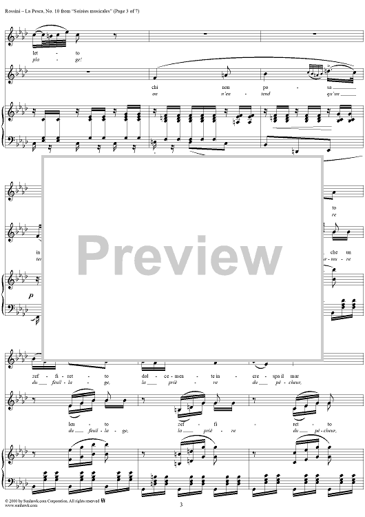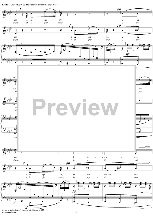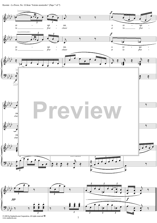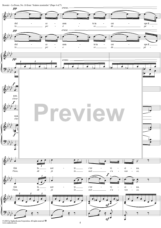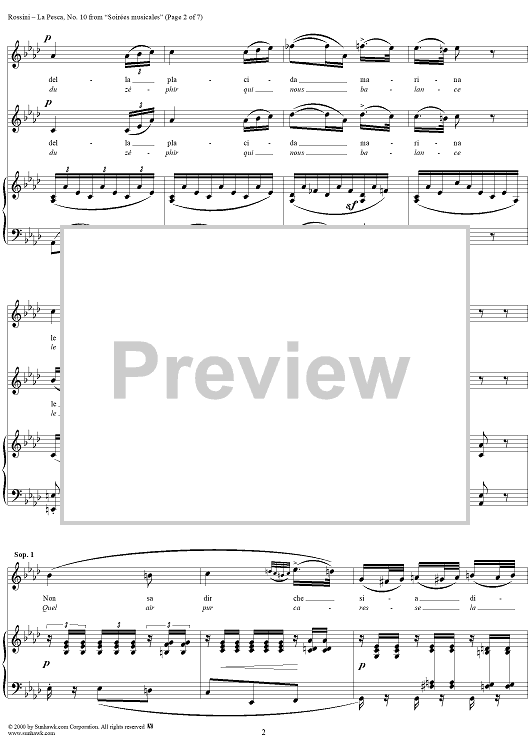 Digital Sheet Music for La Pesca, No. 10 from "Soirées musicales" by Gioachino Rossini, Pietro Metastasio scored for Two Sopranos/Piano; id:255626