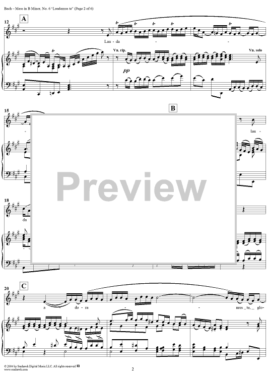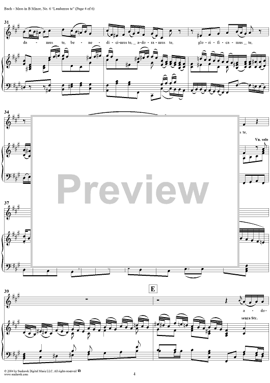 Digital Sheet Music for Mass in B Minor, BWV232, No. 6: "Laudamus te" by Johann Sebastian Bach scored for Soprano/Piano; id:304742