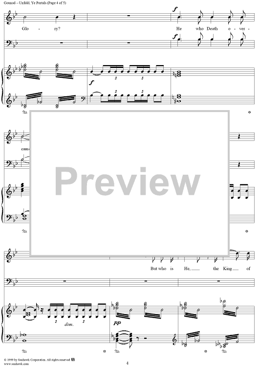 Digital Sheet Music for Unfold, Ye Portals - From "The Redemption" by Charles Gounod scored for Four-part Mixed Chorus; id:268976