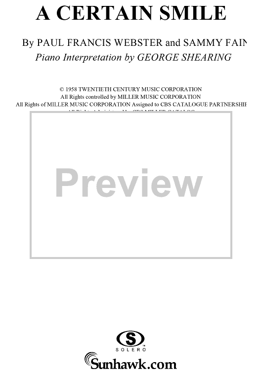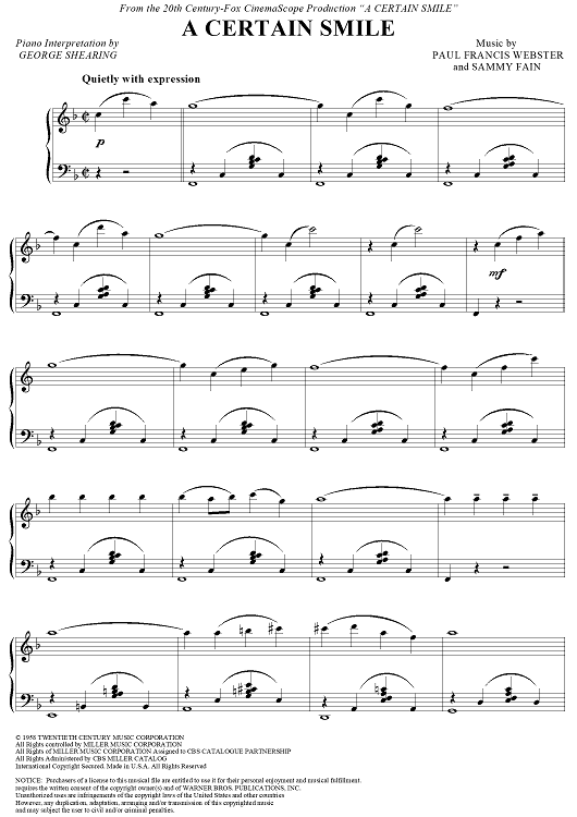 Digital Sheet Music for A Certain Smile by George Shearing, Sammy Fain, Paul Francis Webster scored for Piano Solo; id:116404